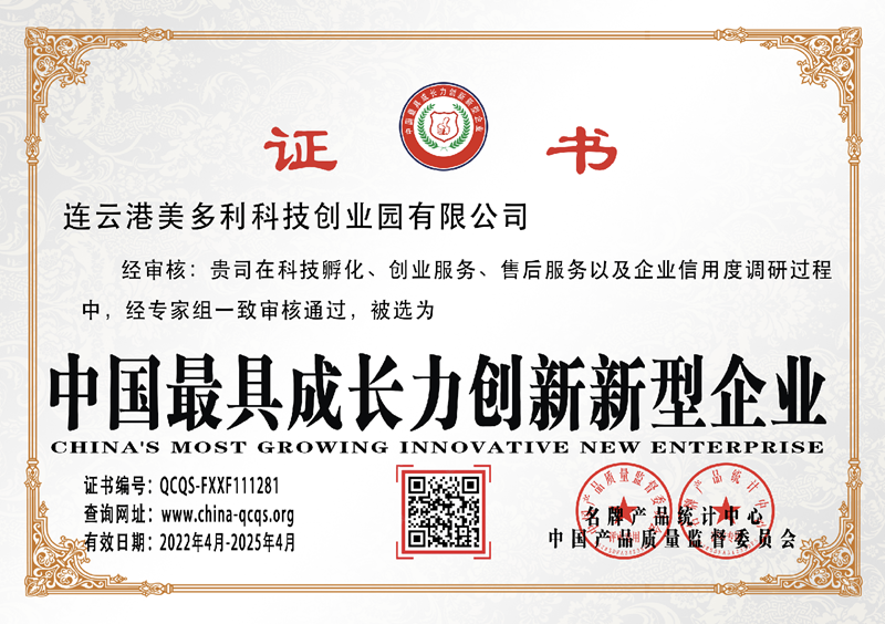 近期,美多利公司科技孵化、創(chuàng)業(yè)服務(wù)等工作通過中國產(chǎn)品質(zhì)量監(jiān)督委員會專家評審認(rèn)定,榮獲中國最具成長力創(chuàng)新新型企業(yè)。