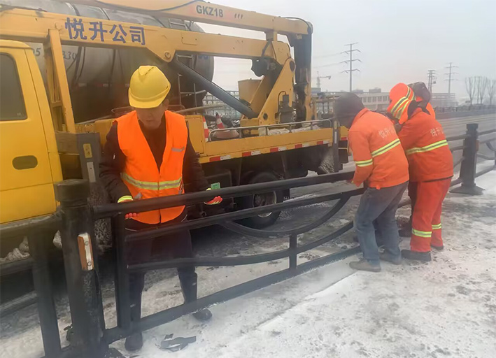 近兩日,因雨雪天氣,道路結(jié)冰濕滑,車輛行駛過程中發(fā)生意外,造成港前大道、海濱大道、228國道等地段發(fā)生多起道路護欄等設(shè)施損壞情況。收到信息后,市政分公司道路養(yǎng)護人員迅速反應(yīng),在班長孫寬成帶領(lǐng)下,隊員們頂風(fēng)冒雪第一時間趕赴現(xiàn)場。