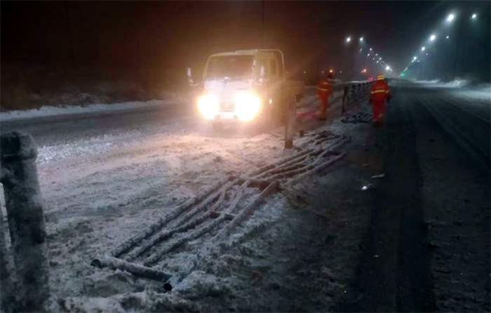 市政分公司根據(jù)公司安排,負責融雪劑裝卸工作,從2月3日下午到4日上午,市政分公司累計裝卸融雪劑已達150余噸。該分公司在做好保障融雪劑裝卸作業(yè)的同時,抽調(diào)4名精兵強將,處理因大雪導致的道路交通事故應(yīng)急處置4起,應(yīng)急處理道路護欄11節(jié),約38米,防止交通事故二次發(fā)生。在5日凌晨更是經(jīng)理盧正楊帶領(lǐng)10名黨員先鋒突擊隊,支援重點道路徐新路的融雪劑拋灑作業(yè),僅靠雙手揮著鐵锨,通宵奮戰(zhàn),迎難而上,高質(zhì)高效完成融雪劑拋灑作業(yè)路段。(李濤)
