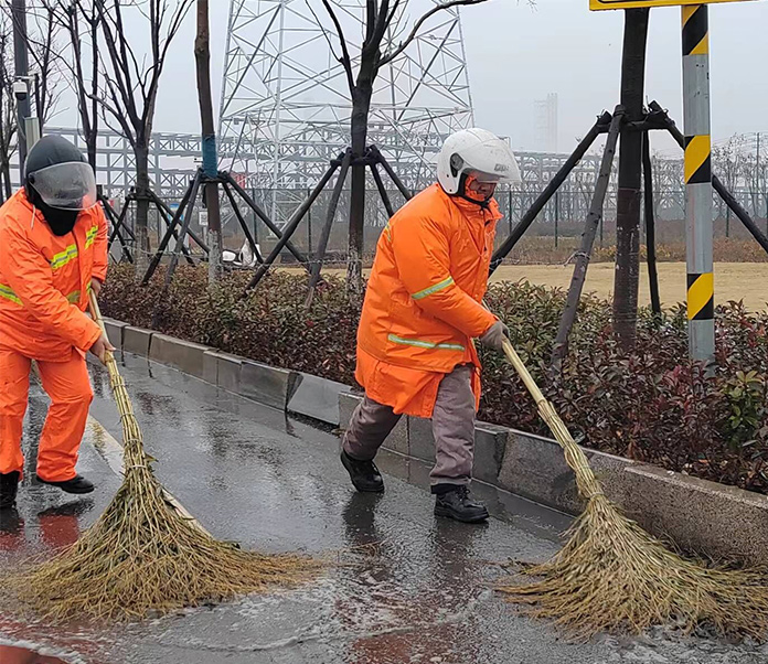 冬雨綿綿,持續(xù)低溫。1月17日上午,保潔分公司全員上下無懼冬雨低溫天氣,堅守崗位,用掃帚譜寫著一曲雨中清掃的篇章,一道道橘黃色身影成為了雨中最靚麗的風景。