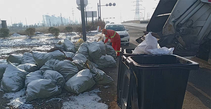 早上六點,在徐圩新區(qū)垃圾轉運站,環(huán)衛(wèi)分公司垃圾清運班組班長羅海軍正在等著垃圾收運中轉車的到來。他說:“知道昨晚下雪了,今天我們提前一小時就上崗了,以防因為道路濕滑影響收運效率。” 據(jù)統(tǒng)計,在持續(xù)低溫時段,他們每天清運生活垃圾高達15噸,清理轉運各類果皮箱垃圾達200余個及19家企業(yè)(單位)的垃圾桶,并同步負責裝運由道路保潔工人撿拾定點擺放在路邊的近500包袋裝垃圾。(何春林)