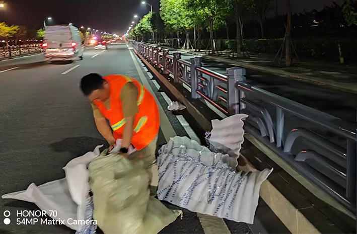 為及時(shí)有效排除道路突發(fā)障礙,保潔勇士無(wú)所畏懼,勇于擔(dān)當(dāng),第一時(shí)間趕赴道路車輛拋灑事發(fā)地段,用實(shí)干精神彰顯鹽場(chǎng)人愛崗敬業(yè)高尚風(fēng)采。